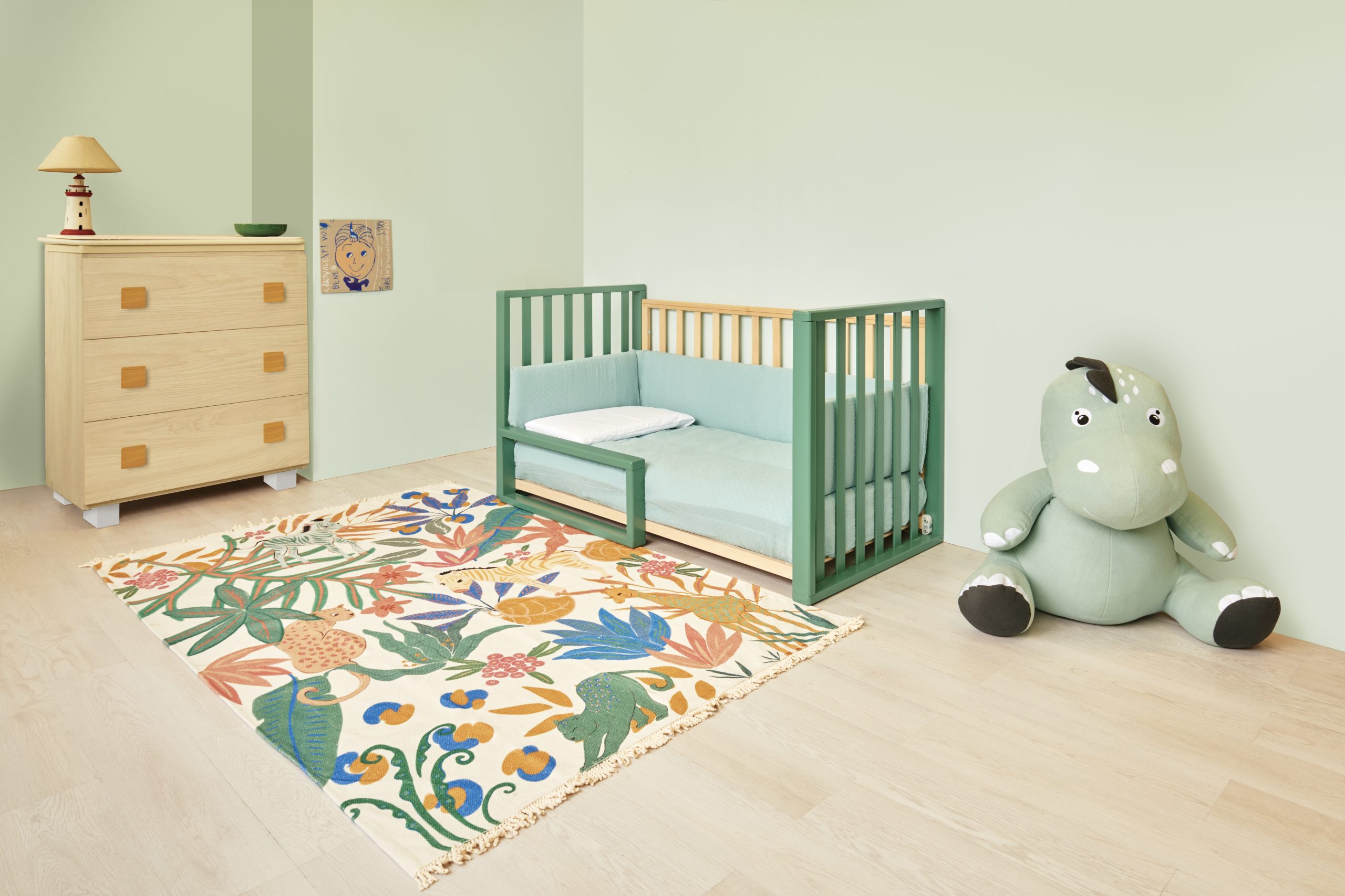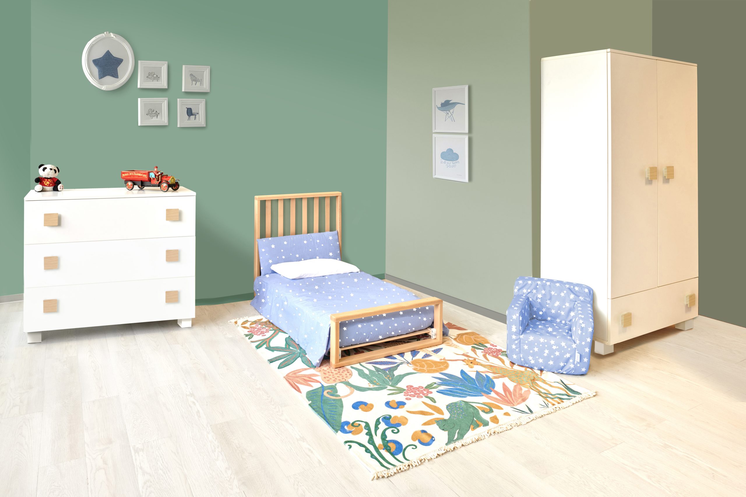 Versione montessoriana evolutiva fino a quando è grande: a terra e con due sponde basse di contenimento, per la conquista di più autonomia in sicurezza. Sponde disponibili in versione alta o bassa per un design personalizzabile.