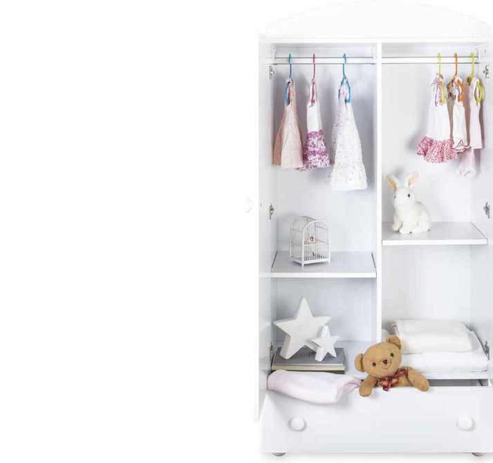Per questo Italbaby propone i suoi armadi coordinati al resto della cameretta, e li dota di ogni accessorio utile alla massima resa.