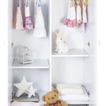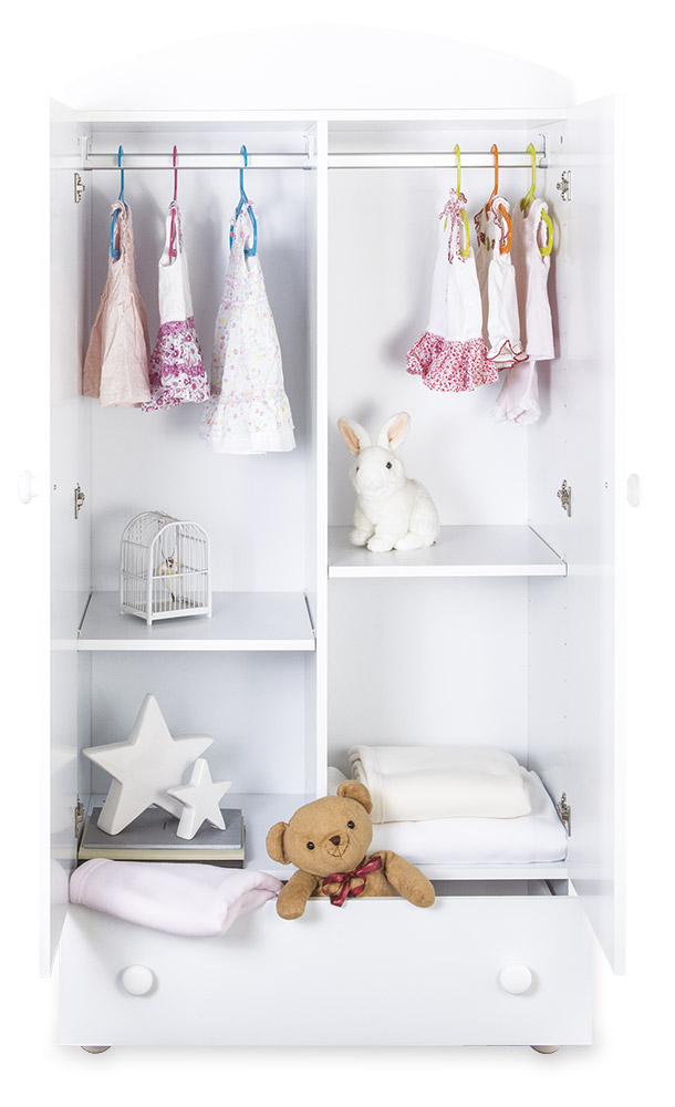 Tutti i mobili presentano un cassetto laccato in tinta Grigia o Tortora, coordinato alle tinte dei decori e del tessile a corredo. I complementi tessili sono tutti realizzati con tessuti in 100% cotone combinati con stampe a pois grigio o tortora. I ricami utilizzati per arricchire i prodotti tessili sono coordinati con i decori dell’arredamento.
