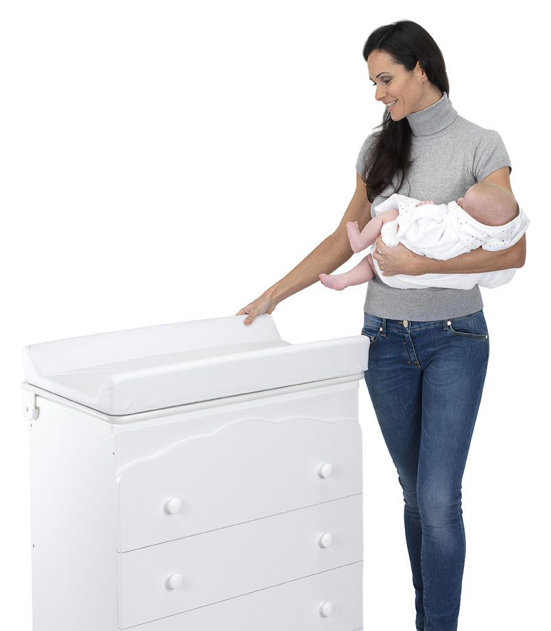 Alle già note caratteristiche della cassettiera/bagnetto con fasciatoio, aggiunge un brevetto unico al mondo pensato per facilitare la mamma nel cambiare, vestire e coccolare il suo bambino in maniera confortevole e sicura.