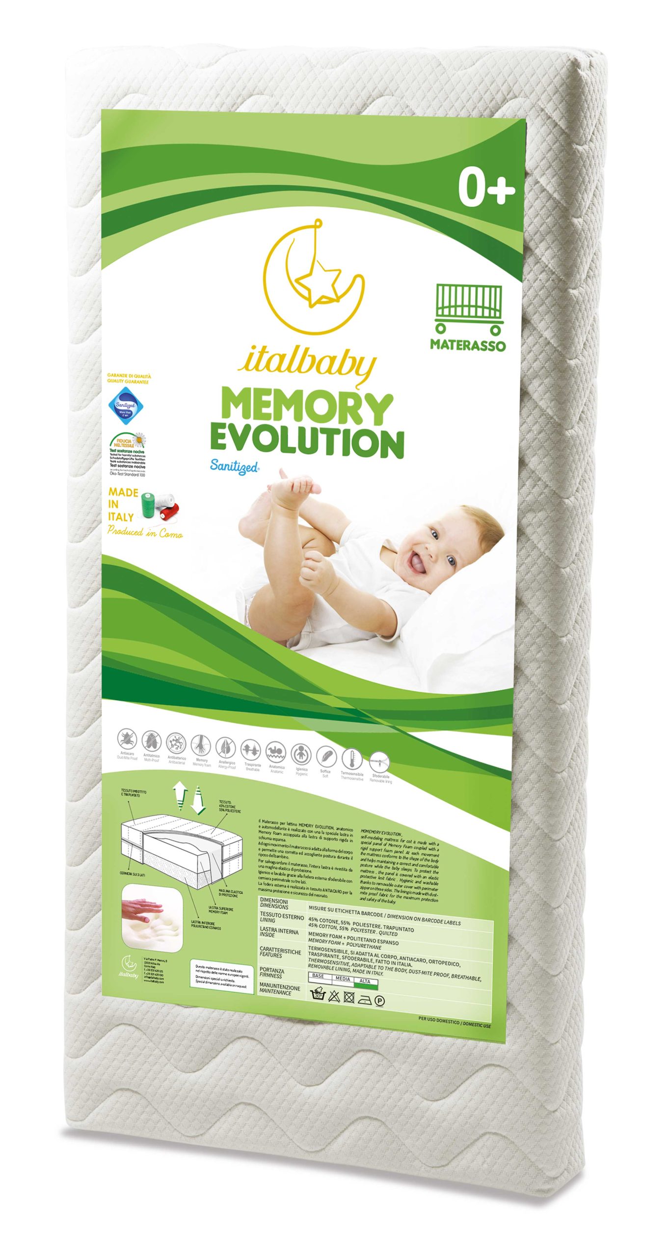 Igienico e lavabile grazie alla fodera esterna sfoderabile con cerniera perimetrale su tre lati. La fodera esterna è realizzata in tessuto Antiacaro per la massima protezione e sicurezza del neonato.